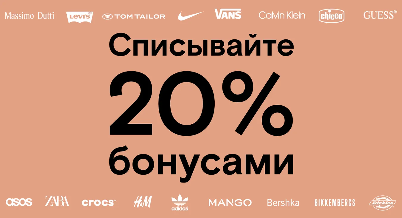 Назовите промокод при покупке и сможете оплатить бонусами до 20% от стоимости чека в любой день. Минимальный чек — 5000₽. Срок действия акции — 14 дней с момента отправки этого письма.